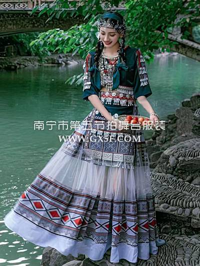 01G631女墨绿短袖衣长裙苗疆苗族三月三