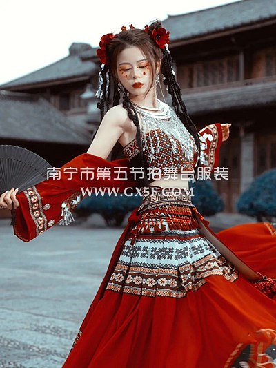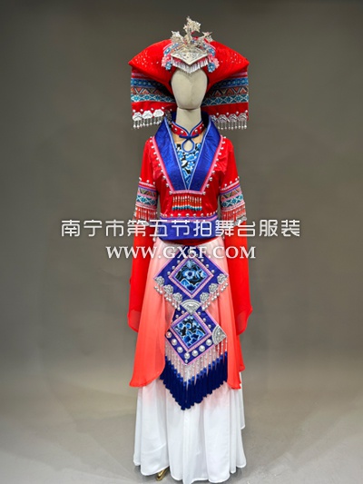 01G639女红色水袖长裙壮族盛装三月三