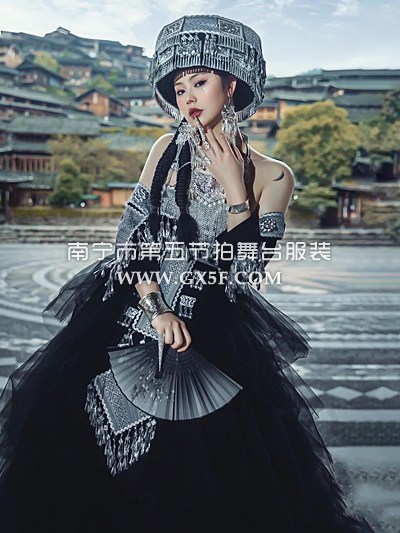 01G638女黑纱抹胸长裙苗族土家族盛装三月