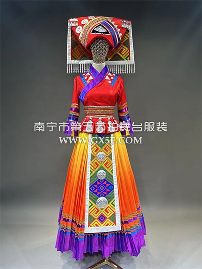 01G640女橙色渐变长袖长裙羌族一篓秋