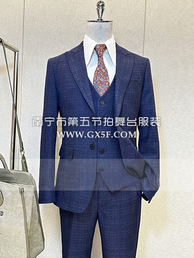 10B989蓝黑格纹外套裤子主持人歌手男礼服