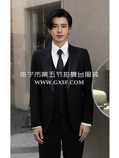 10B1001黑色亮面主持人歌手男礼服