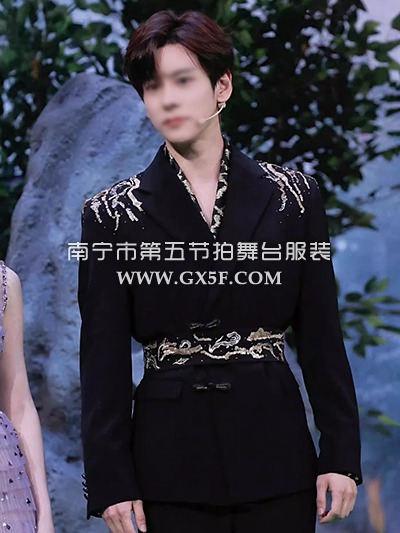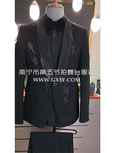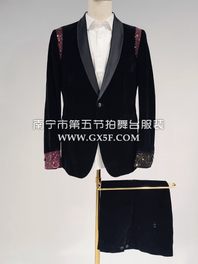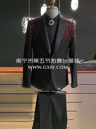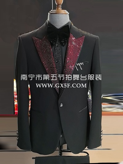 10B1000黑色绒面红底亮钻领边主持人歌手男