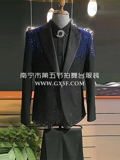 10B1003黑色蓝钻主持人歌手男礼服