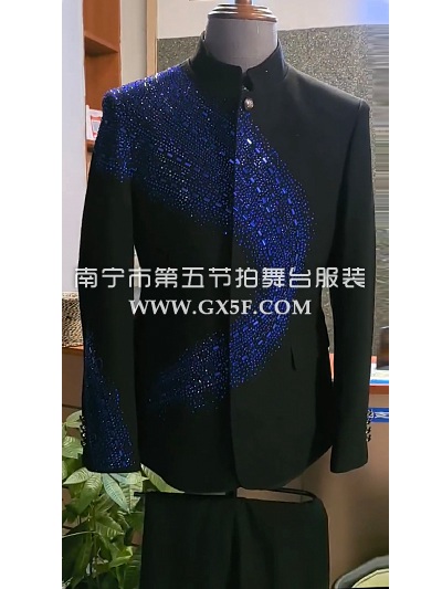 10B1005黑色蓝钻中山装主持人歌手男礼服