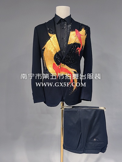 10B981黑色带钻亮片红锦鲤主持人歌手男礼