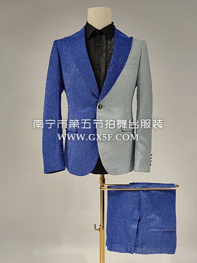 10B985蓝灰拼接细闪主持人歌手男礼服