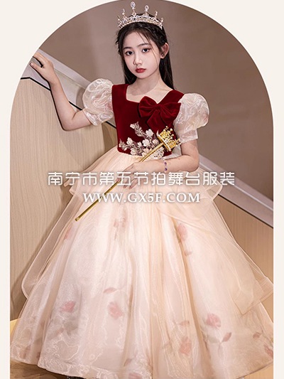 12G1721儿童女香槟红短袖长礼服公主裙