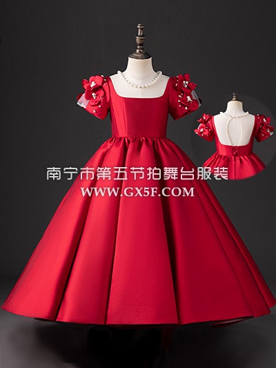 12G1724儿童女红色圆领长礼服花童公主裙