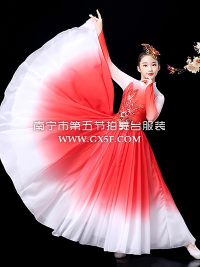12G1741儿童女红白渐变长袖720度大摆裙歌伴