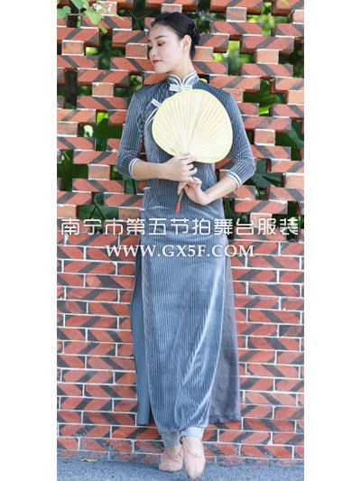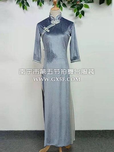 07G345灰色长袖长旗袍永不消逝的电波渔光