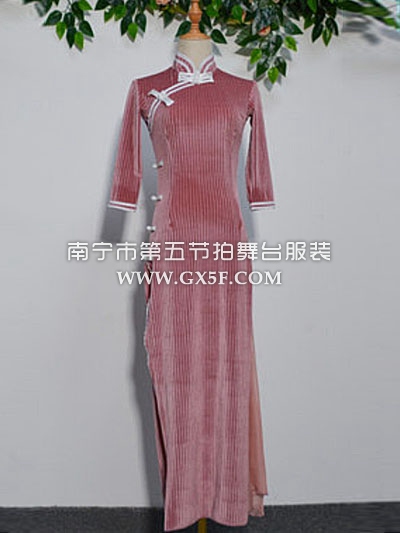 07G347藕粉色长袖长旗袍永不消逝的电波渔