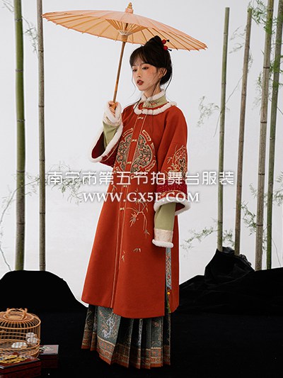 08G1582红披袄绿衣绿裙明制加厚对襟马面裙