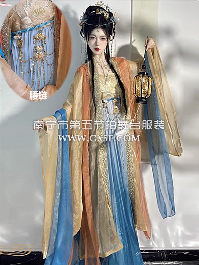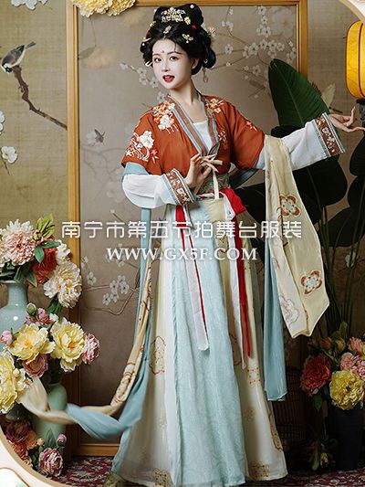 08G1587橙蓝大袖衫诃子裙唐制汉服古装
