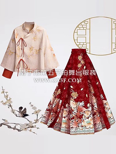 08G1586米黄衣红裙马面裙汉服民族风唐装