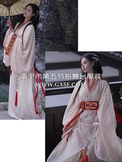 08G1591米白色大袖衫直裾襦裙战国袍古装