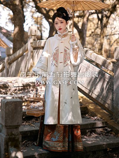 08G1594米色披袄杏色衣红裙明制加厚对襟马