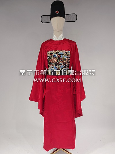 08B1604红色暗纹圆领广袖汉服宋朝县令大臣