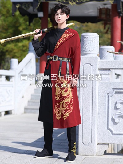 08B1562酒红黑拼接改良汉服锦衣卫武侠民族