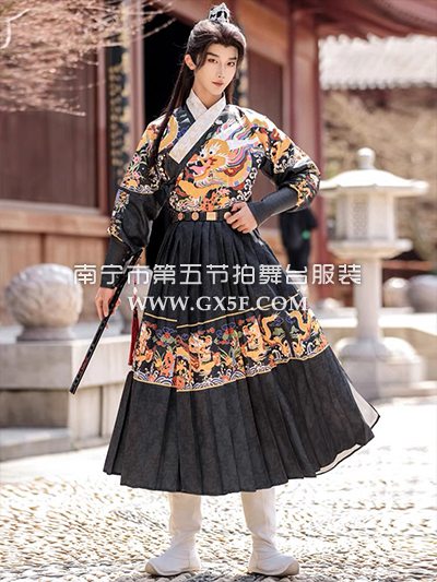 08B1563黑色龙锦汉服明制飞鱼服锦衣卫