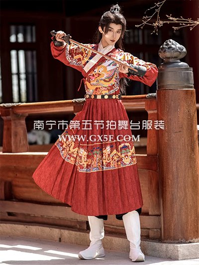 08B1564红色龙锦汉服明制飞鱼服锦衣卫