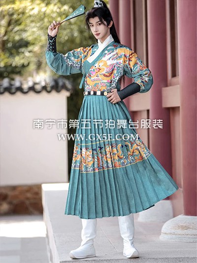 08B1566绿色龙锦汉服明制飞鱼服锦衣卫