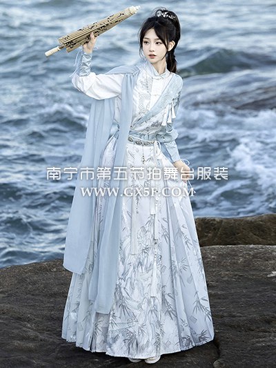 08G1574浅蓝白明制汉服仙侠风新中式马面裙