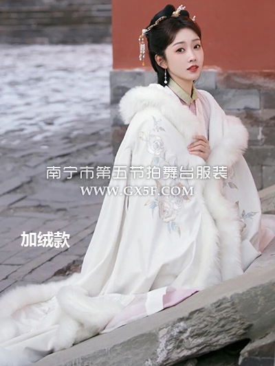 08G1577白色刺绣连帽汉服斗篷冬季披风