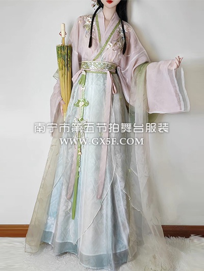 08G1578粉蓝绣花宋制齐腰汉服古装