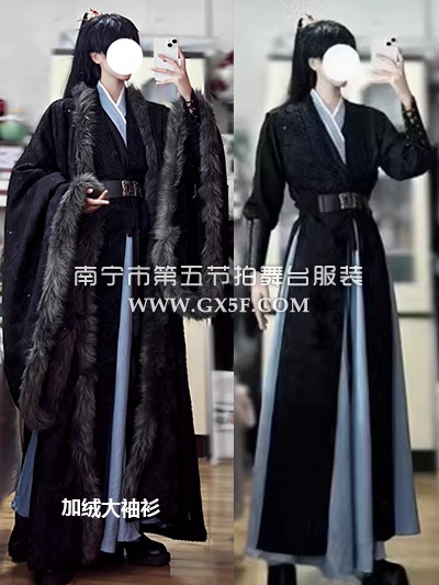 08B1579黑色加绒加厚披风斗篷大袖衫男国风