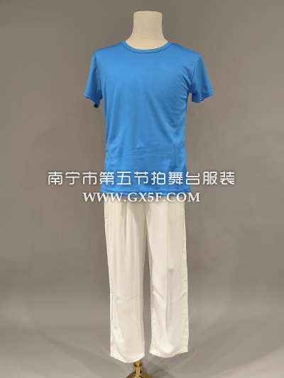 02B1391男蓝白渐变长袖衣白裤现代舞歌伴舞