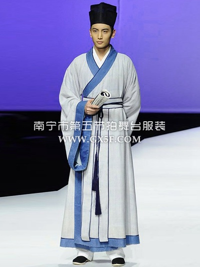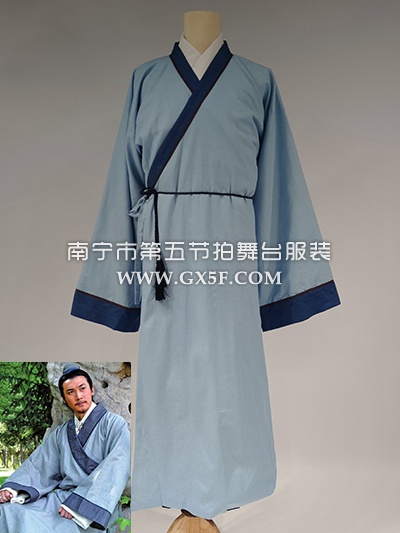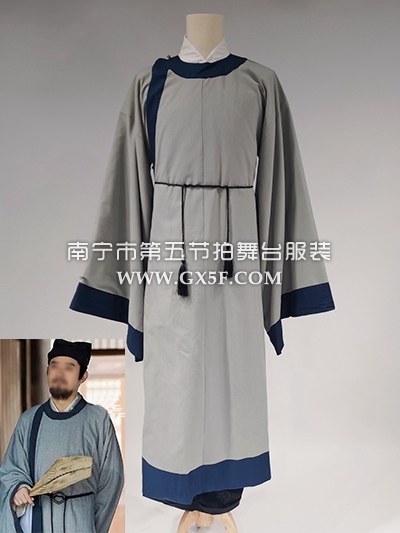 08B1545灰蓝色圆领汉服古装唐宋诗人书生文