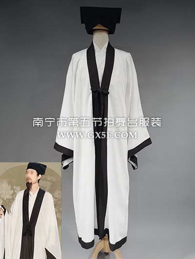 08B1543黑边白袍汉服古装唐宋诗人书生文人