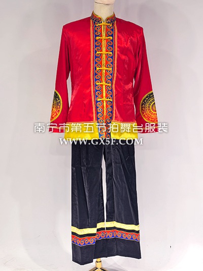 01B803男红黑铜鼓衣裤壮族少数民族