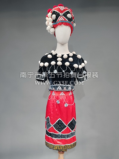 01G796女黑色短袖衣红色短裙景颇族