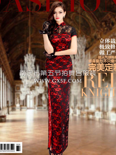 07G134女红色包肩黑底蕾丝性感高开叉夜店