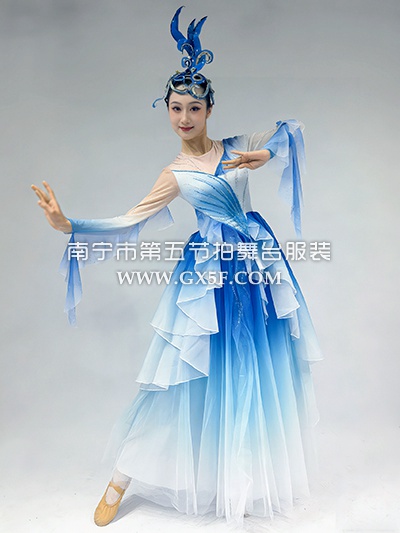 02G1261蓝色渐变长袖连衣裙中国风古典舞大
