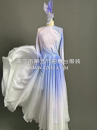 02G1524蓝色渐变长袖连衣裙大摆裙开场舞歌