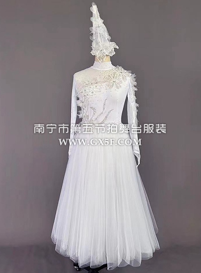 02G1522白色长袖连衣长裙雪绒花歌伴舞