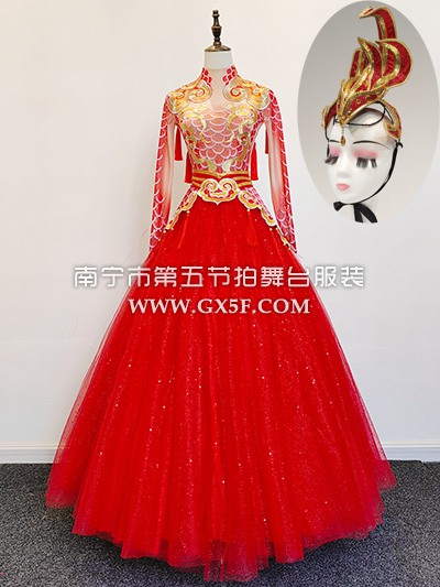 02G1461红色长袖长裙春晚无我歌伴舞开场舞