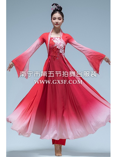 02G1572红色渐变长袖连衣裙古典舞中国风大