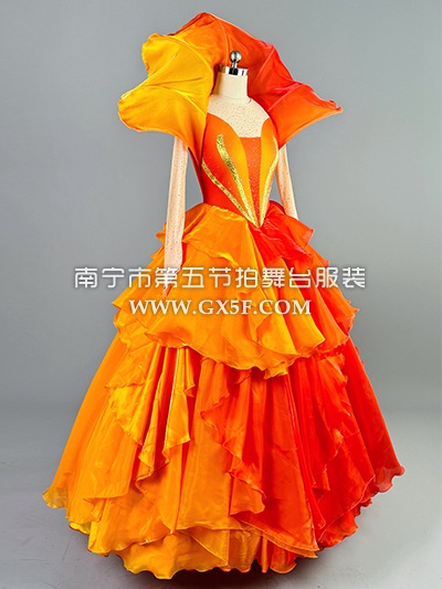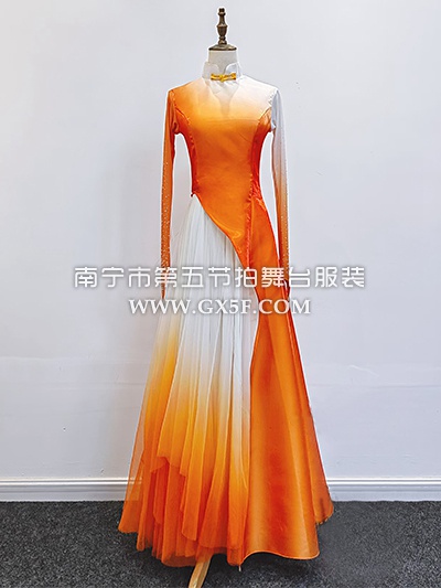 02G1594橙白渐变长袖长裙春满华夏开场舞歌