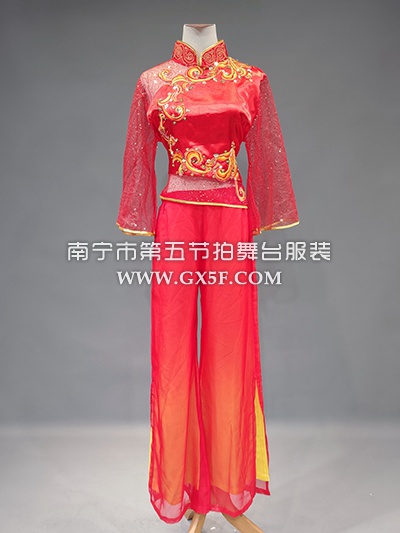 02G1267女红色金边单边短袖长裤喜庆秧歌打