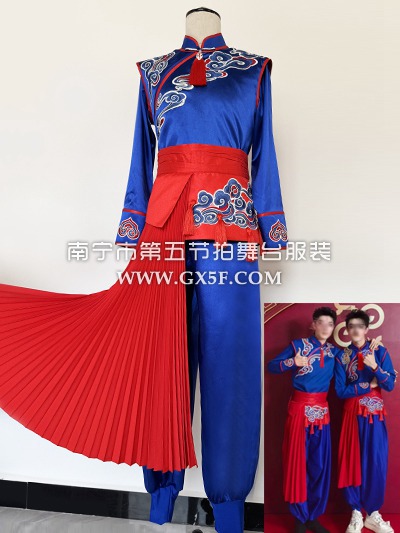 02B1506男红黄渐变无袖长裤绣龙秧歌舞蹈