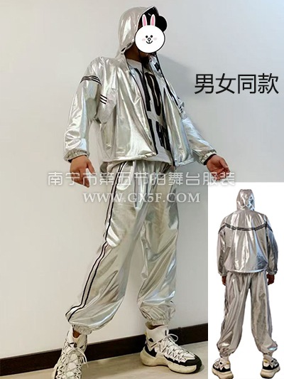 02G1599/02B1607男女同款银色亮面连帽衣裤嘻