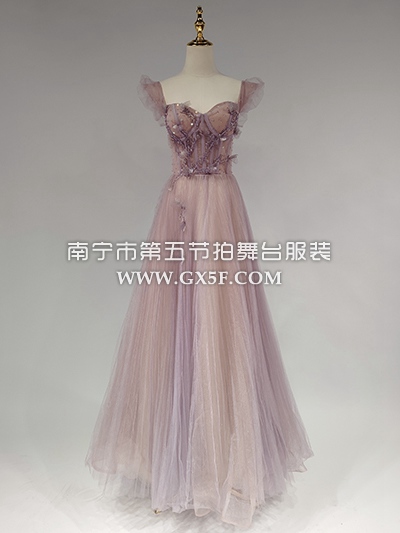 03G1313浅紫色吊带钉珠纱裙长礼服