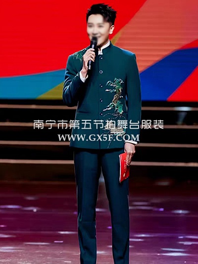 10B1041蓝黑色立领烫钻刺绣金山主持人歌手