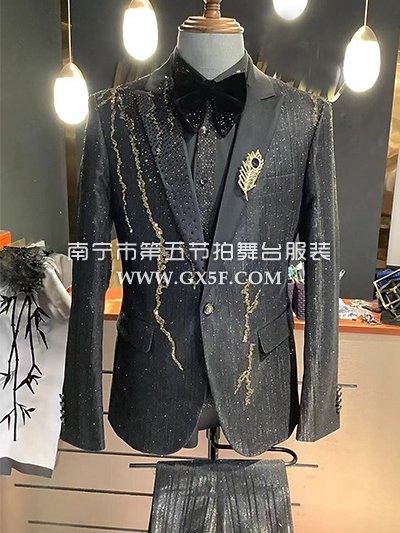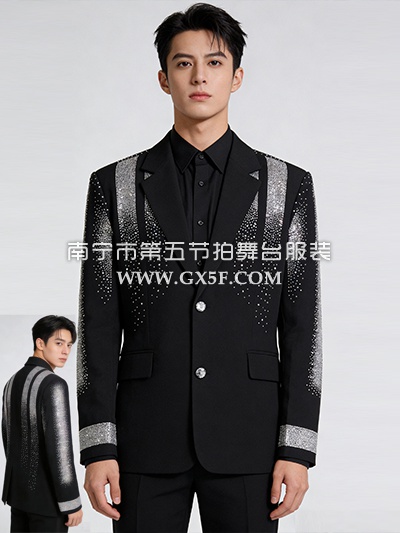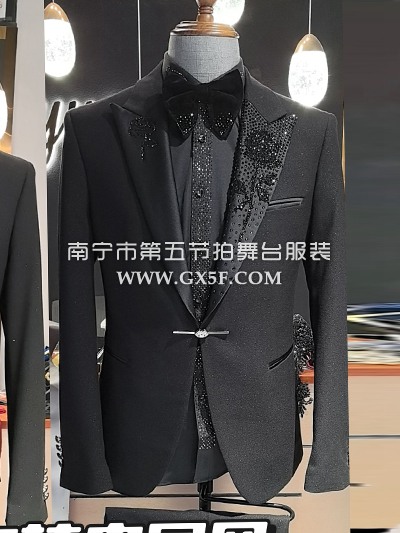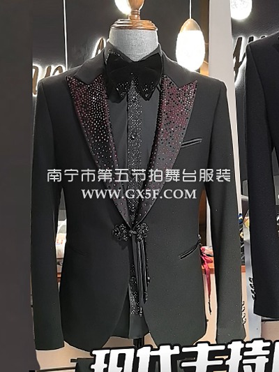 10B1043黑色西装闪亮烫钻主持人歌手男礼服
