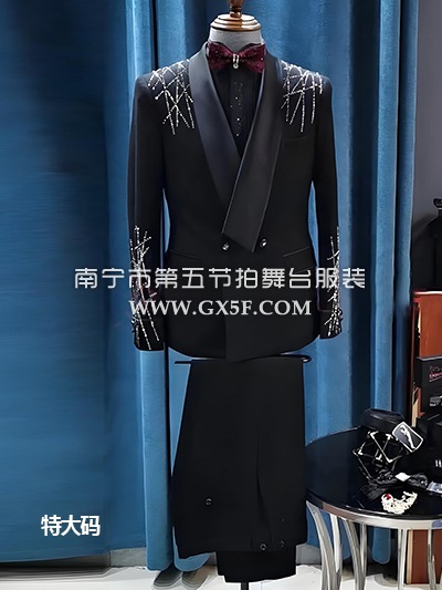 10B1023特大码男礼服黑色肩袖烫钻套装主持