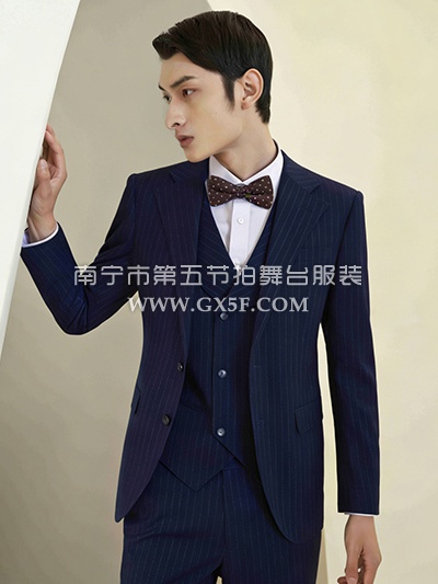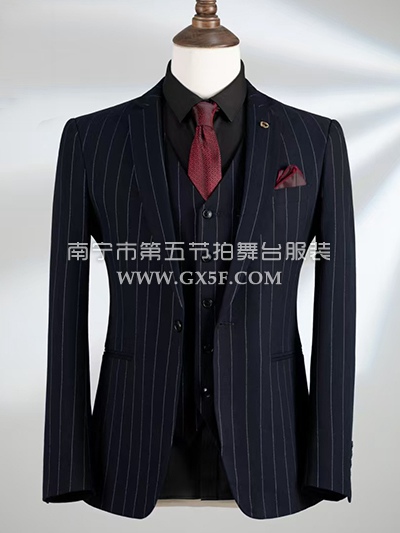 10B1031藏蓝色竖条纹主持人歌手男礼服
